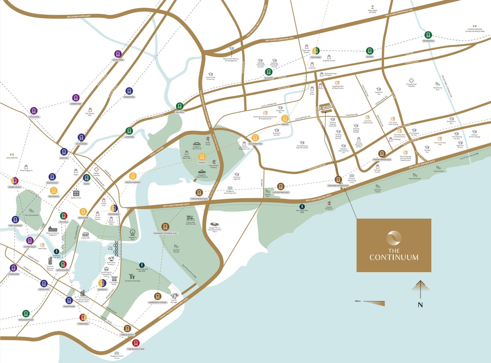 Located along Haig Road, The Continuum offers excellent connectivity within 1 km of both Paya Lebar MRT interchange and Dakota MRT station, ensuring easy access to City Hall and downtown Singapore. Families will also value its proximity to top schools such as Tanjong Katong Primary and Secondary Schools, Tanjong Katong Girls’ School, and Chung Cheng High School, making it an ideal choice for those with school-age children.